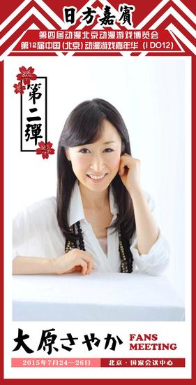 大原沙耶香号称“姐姐向声优专业户”。在近百部动漫作品里,为姐姐、太太一类的角色配音,成熟温柔的声线,让无数的姐控神魂颠倒,其中经典代表作品有《妖精的尾巴》艾尔莎•史卡雷特、《xxxholic》壹原侑子、《Fate/Zero》艾因茨贝伦、《水星领航员》艾莉西亚•佛罗伦斯等。大原老师甜美而又富有女性磁性的嗓音一向受到音控党们的追崇,首次来京的大原老师会在国家会议中心的IDO现场为粉丝们展示她独特的声音。7月26日大原老师将出席IDO12粉丝见面会