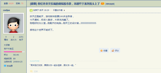 在过去的1-2周内,中国股市的从千股跌停,到千股停牌再到千股涨停,让广大股民和围观群众不禁感叹“人生的大起大落实在是太刺激了!”不过,城门失火,殃及池鱼。对于一些手游创业团队来说,这样的刺激却太不爽了!知名游戏动漫宅聚集的S1论坛上近日有创业团队爆料,由于近期股市跌停,投资人临时撤资,导致刚租好办公室、配齐电脑准备大干一场的创业团队只能“洗洗睡了”。随后有网友跟帖表示“已经创业的公司也直接倒闭了,准备回原公司继续打工。”