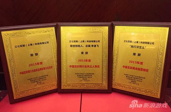在7月16日举办的2015中国互联网领袖峰会暨中国互联网企业竞争力高峰论坛上,来自互联网行业的领袖与精英就“互联网+”的新经济形态展开了热烈而深入的讨论。会议设置二十个企业竞争力单项奖。三七互娱同时囊获“2015年度中国互联网行业最具影响力企业奖”、“2015年度中国互联网卓越营销奖”两项大奖,三七互娱联合创始人、总裁李逸飞则获评“2015年度中国互联网行业领军人物奖”。