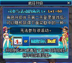 2015年7月16日至7月30日,疯狂升级来袭,升级后次日登录即可获得升级券或者成长BUFF!
