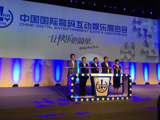 在开幕式启动仪式的最后环节,上海市宣传部副部长朱芝松、国家新闻出版广电总局副局长、中国音像与数字出版协会理事长孙寿山等嘉宾共同启动了开幕仪式,同时宣告2015Chinajoy的旅程也正式开启。