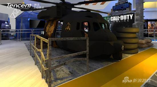 《使命召唤Online》展区当中,占据了最大面积的则是一架巨大的军用直升机。