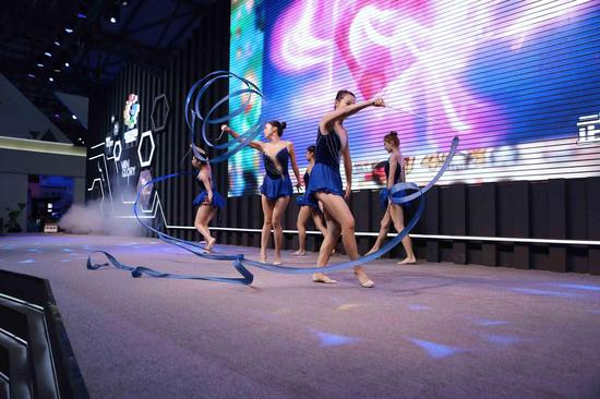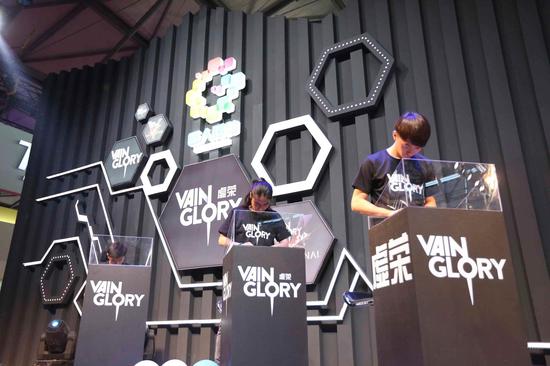 除了Vainglory虚荣对抗赛,巨人展台的艺术体操表演也是现场一大亮点,演员婀娜的身姿,一次次刺激着台下观众的眼球,这些颜值丝毫不逊于Showgirl的舞蹈演员们用自己的精彩的表现将更多的玩家留在了巨人展台。