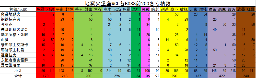 1一图流,地狱火堡垒各BOSS前200各专精数量: