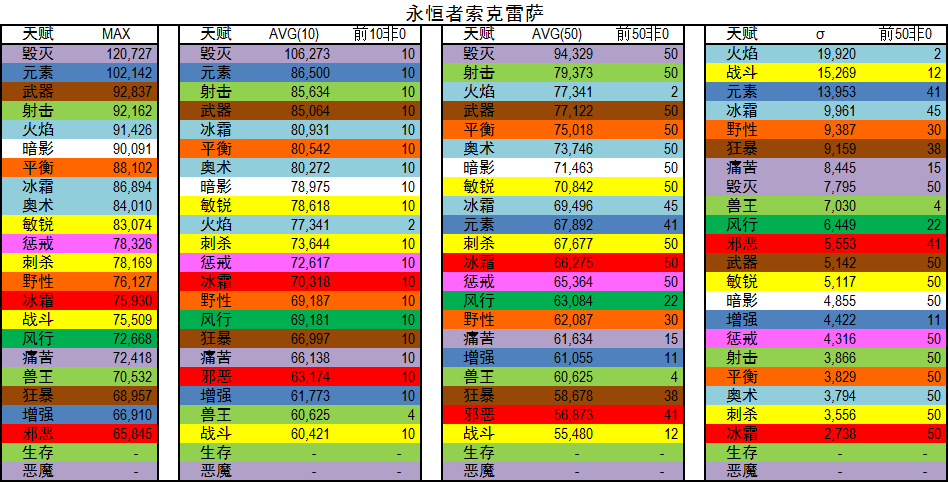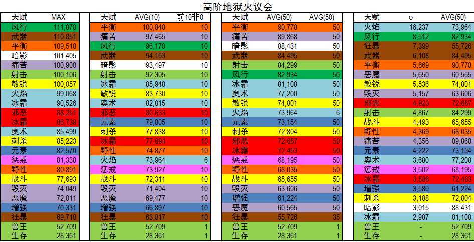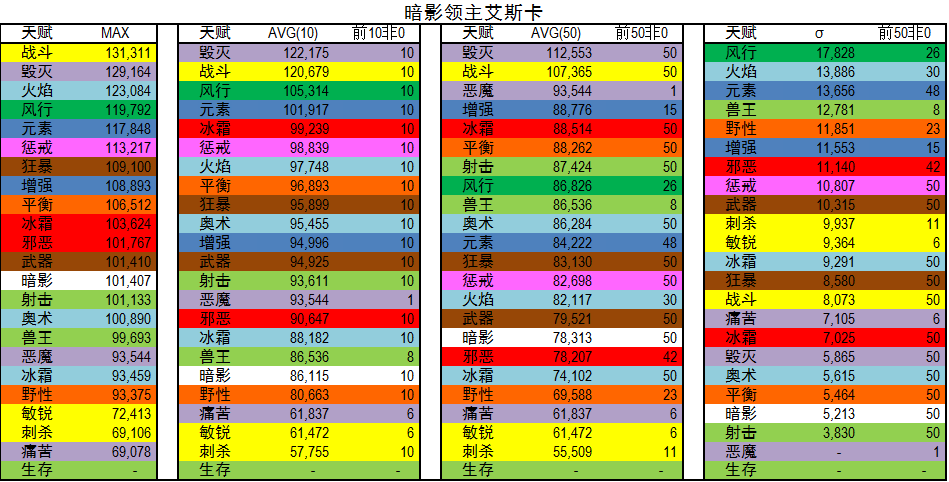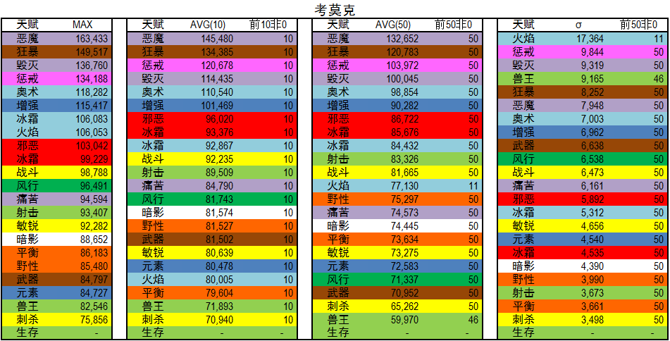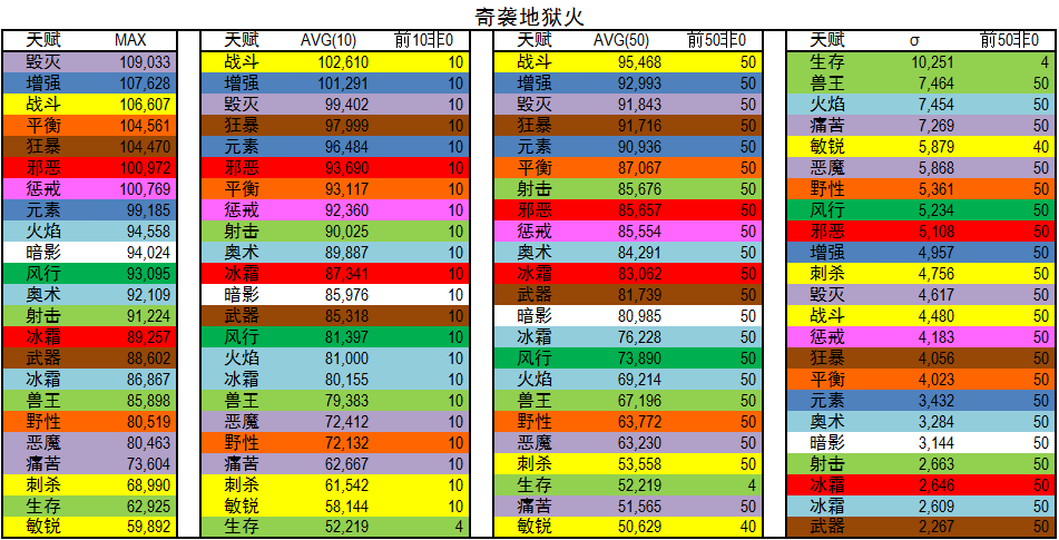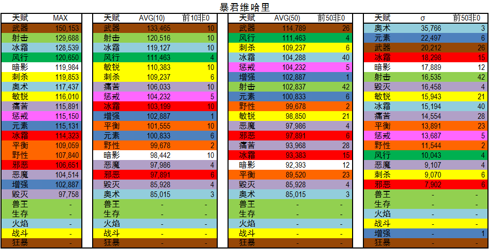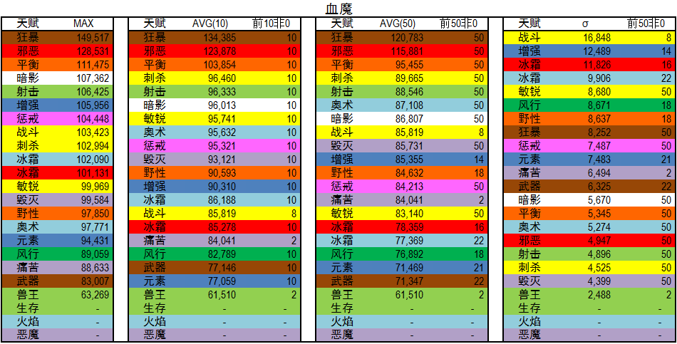 AVG(50):专精前五十平均DPS,用以代表优秀玩家DPS。