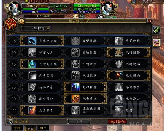 其实这个大家基本都是知道的,通用的天赋就是自然守护,风行图腾,元素召唤,元素回响,先祖指引,元素冲击,元素融合,而我是把元素冲击换成了尊者,因为我觉得冲击伤害太低,尊者的话起手把火尊者图腾放到比较猥琐的地方比如进场的那个地方,或者是达拉然下水道的水管里,都可以基本保证你打一波满的尊者火元素起手,他们要是去拆的话,难免站位就会出现漏洞,而土元素,可以作为被集火时候的保命或者关键时刻的一个点晕,因为你被集火的时候一个土元素尊者会让他们很头疼,他们要么顶着线打你,要么拆图腾来让自己节奏不完美,事实证明集火的那几秒大家都是蛮上头的,不会秒拆土元素,都会打着打着觉得恶心了才拆,所以土火元素尊者这个天赋我觉得是要优于同层其他两个天赋的,其实说了这么多,感觉尊者很牛逼,其实他也是个垃圾天赋,毕竟图腾可拆,而我只能尽量避免这些,让它们发挥他们应有的最大收益,谁让这层的三个天赋在jjc都很垃圾呢,如果大家没法做到队友被集火,火元素秒拉线开先祖给队友抬血,或者土元素出来不能秒晕到人,或者拉线慢的话,建议还是出冲击,配合元素释放的BUFF,还是有点伤害,就是有时候容易出现该补烈焰消耗这个BUFF同时冲击也可用,就比较尴尬了。