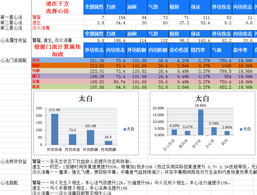 和朋友一起玩天刀,曾经在心法选择的问题上非常纠结...于是决定将网上的资料整合一份,形成一个方便查询的EXCEL表格。