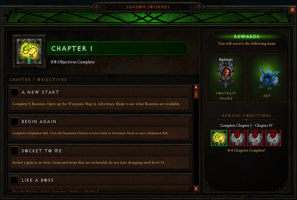 这个补丁也包含了意欲提高冒险模式速度同时鼓励玩家在多个章节中探索赏金任务的改动。在移除试练秘境之外,我们通过给赫拉迪姆宝箱添加了新的章 节专属制造材料。在冒险模式下完成全章赏金任务现在也会奖励更多的赫拉迪姆宝箱物品,包括制造材料,金币,和额外的章节专属制造材料。