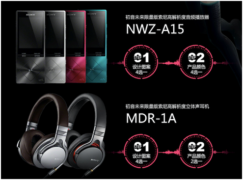 此次共有索尼Walkman NWZ-A15和索尼耳机MDR-1A两款产品参与限量版全民投票:前者为口袋尺寸无损音乐播放器,轻薄小巧却搭载多个发烧级音频技术,更有约50小时强大续航能力;索尼耳机MDR-1A也支持包含更丰富音乐细节的无损音乐,佩戴舒适,用限量版1A欣赏初音未来的天籁歌声,相信会为热爱初音的你带来前所未有的体验!