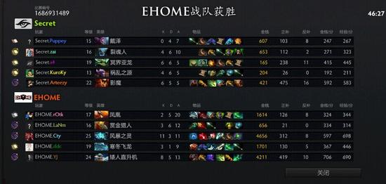 然而万万没想到,EHOME的阵容在后期充满了韧性。冰龙+凤凰变蛋的组合让秘密手足无措。CTY的蓝猫和国土的赏金两次关键时刻的杀鸟,拖延了毒龙的强袭和影魔的金箍棒到手时间,中断了Secret的攻势。30分钟后的团战全面进入EHOME的节奏,EHOME势如破竹摧毁秘密两路高地。最终团战EHOME经济反超30000,实现巨大逆转!