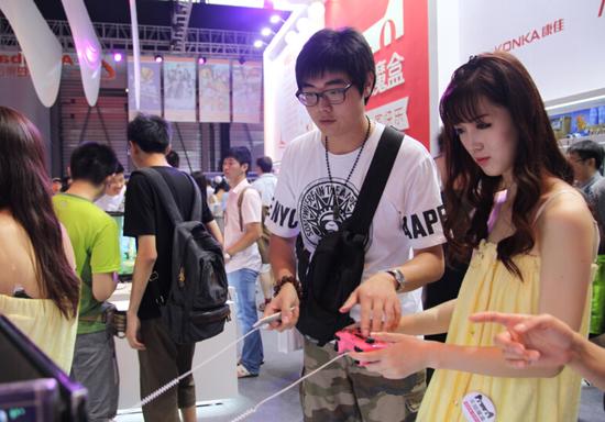 《疯狂出租车》、《博雅斗地主》的体验区也经常是被里三层外三层的玩家所环绕,大家都想现场感受一下电视大屏、天猫魔盒带来的视觉震撼与酷爽体验。