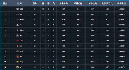 通过上周比赛来看,M3最近的情况不容乐观,因此战胜EDG的可能性很低,若M3被EDG击败或战平,则自己的积分会保持在22-23分,这时候UP、WE、RNG都有超越或追平其的可能性。
