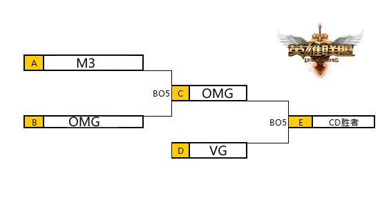 图2:冒泡淘汰赛示意图冒泡定位赛:“晋级战队”将会对阵常规赛排名第5的战队LGD!也就是说,OMG与VG的胜者,将会对阵LGD!而在这场比赛中,胜者将对阵常规赛排名第4的队伍Snake,败者将对阵常规赛排名第3的队伍IG!后面这两场比赛胜利的队伍将晋级半决赛。