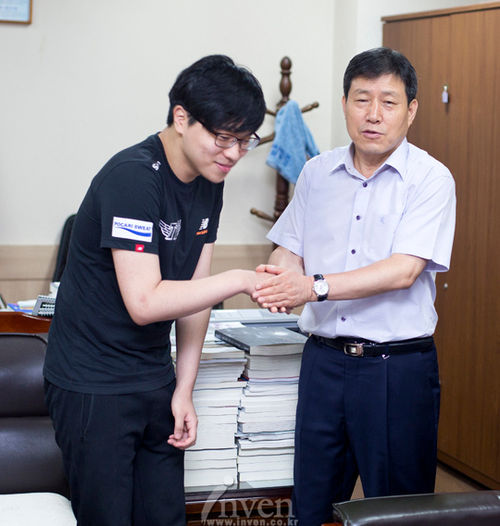 “我自己都不知道放假了,不过好在大多数学生都知道”由于长期没有接受过采访那紧张的表情看上去真的很可爱。来到学校,首先应该跟大家打个招呼。Bengi在跟SKT的教练、学校的校长和教导主任打了招呼后,在高二年级的教室里接受了采访。