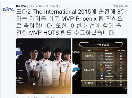MVP战队接受赛后采访在本次DOTA2国际邀请赛TI5上,来自韩国的战队MVP.P和MVP.H均发挥不错。其中MVP.P更是连胜各路豪强取得了历史上最好成绩(第七名),获得了82万美元奖金,折合韩元约等于9亿韩元。作为一只首次打进TI5正赛的队伍,实在难能可贵。