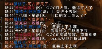 不管你们谈些什么,请时刻记得遵循你的角色设定,如果你想向陌生人展示你的故事,你可以有意将漫无目的的聊天导向你的过去。现实世界的社交礼仪在戴着面具的RP世界中同样适用,对他人以礼相待会使你获得好评,而过分的出格行为则会对很快传遍整个金色平原。在说出与RP无关的台词时,你必须谨记在自己的发言前加上OOC(OutOfCharacter)。