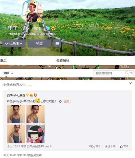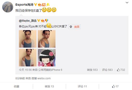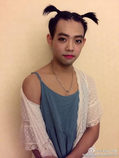 Maybe今天发布了一组女装照,自称对不起GAY兄GAY弟们,让你们失望了。照片一出,立刻闪瞎众人的眼睛!