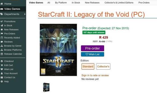 另外,该零售商也接受许多尚未公布发售日期的游戏的预购,不过这些游戏的挂牌发售日期都是12月31日,所以《星际争霸2:虚空之遗》的这个日期就像是来自某种渠道。