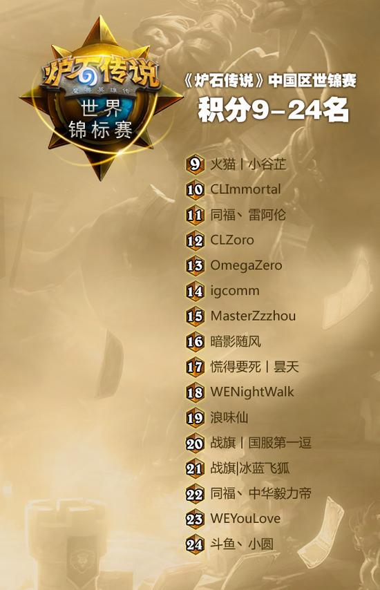 炉石世锦赛积分9-24名:
