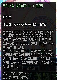 新增的被动技能 习得后冰魄剑变更为水晶剑 冰魄剑的第1/2击追加攻击力:100% 第3击删除,第1/2击得到强化。2次攻击会有减速效果。 减速效果同原第3击效果,命中时可强制中断使用其他技能。 |