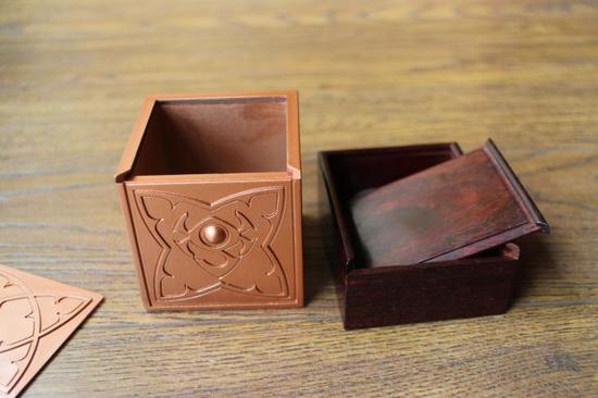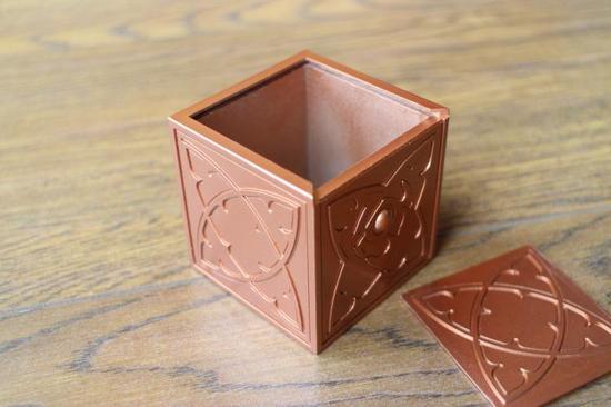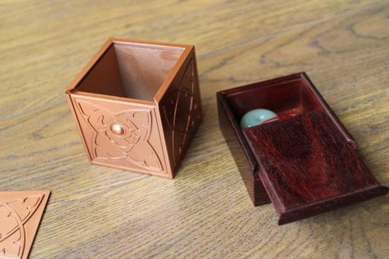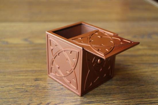 漆的颜色竟然不是土豪金。盒盖结构参考了一个木头盒子