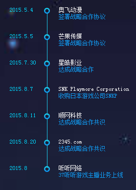 今年Q2以来,顺荣三七与国内外知名企业合作,将业务延伸至影视、秀场、电竞、直播、电商、媒体等多个领域,展开泛娱乐布局。