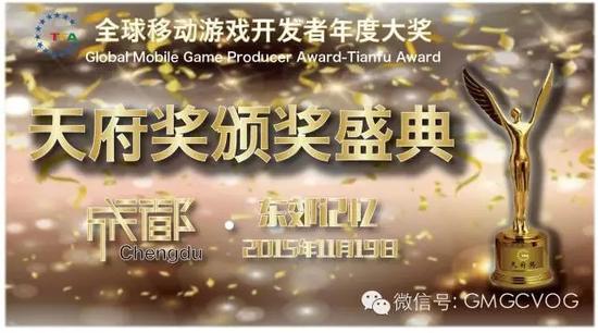 2015年11月19-21日在成都“东郊记忆”举办的中国(成都)数字娱乐节(DEF2015)上,“天府奖”这一已连续评选三年的国内移动游戏领域奥斯卡奖,此次将移师官方VIP晚宴。默默耕耘一年的获奖制作人、制作团队们将在业界最高级别的商业领袖面前荣耀绽放,更将在未来永久住进玩家的心间。在此,默默耕耘一年的获奖制作人、制作团队们将在这些业界最高级别的商业领袖面前荣耀绽放。