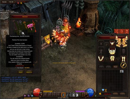 用潘多拉的锄头【双手】在矿区采集,会消耗耐久度但你可用宝石的祝福来修复耐久