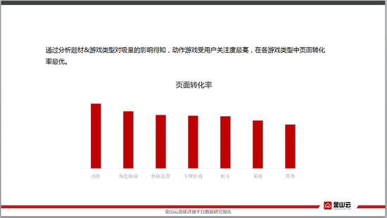 通过分析游戏题材和游戏类型对吸量的影响,发现动作游戏的转化率非常强势,成为游戏类型中吸量NO1。但实际上动作类手游与角色扮演、休闲、卡牌、射击类主流类型游戏拉开的差距并不是很大。