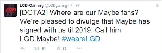 被众多职业选手看好的Maybe选择跟LGD长久的签约,也是符合自身的一个发展。Maybe这位选手的实力不用赘述,可以预见年轻的他在未来几年都会在DOTA2职业圈里扮演重要的角色,成熟起来的Maybe相信一定不会比国外的天才少年差,这份长约对于双方来说都是共赢的局面,希望LGD在未来能够更加出色。