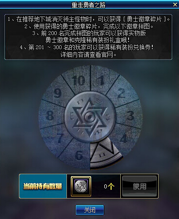 使用获得的勇士徽章碎片,完成游戏内徽章拼图。