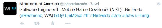 近日,任天堂美国工作室在自己的官方推特上发布了一条招聘信息,公开招募手游开发者。据招聘信息显示,任天堂美国工作室希望广大有资深安卓/iOS手游开发经营的技术人才可以加入他们的团队。