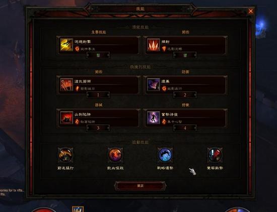 技能:扫射-暗影游移,闪避射击-凝神射击,复仇之雨-箭羽遮天,尖刺陷阱-粘附陷阱,烟雾弹-飘忽不定,蓄势待发-集中心智。