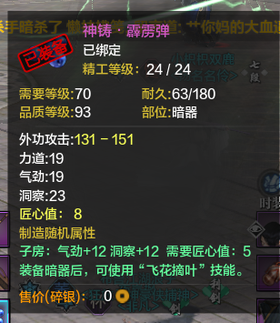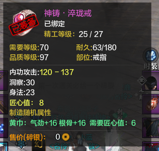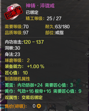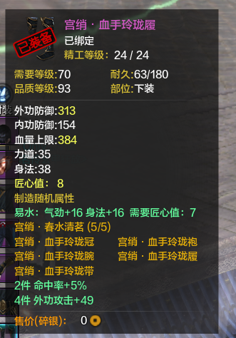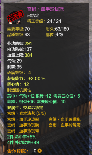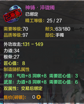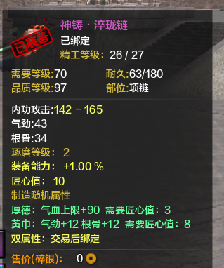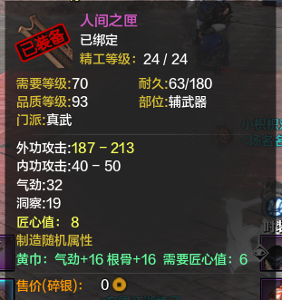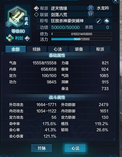第二:没有防御的血是没有质量的。所以我就堆血了,当然真武本身就是需要堆血的职业,特别是论剑里,相当重要,至于副本,输出并不重要,很多真武都喜欢买气劲,洞察,但是我都是气劲,根骨,有了血才能耗死别人。然后身份第一职业选捕快,多200防御,对真武也是很重要的,多200防,你的血有了很大的保证。当然这不但是说真武,其实所有职业的副属性都应该堆根骨。