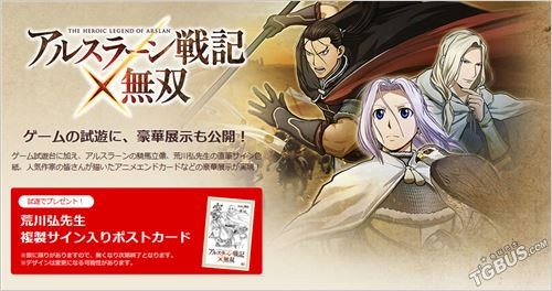 《亚尔斯兰战纪无双》:在展区内会展示巨大的亚尔斯兰骑马像,而现场试玩本作将可以得到荒川弘签名的海报复制品。