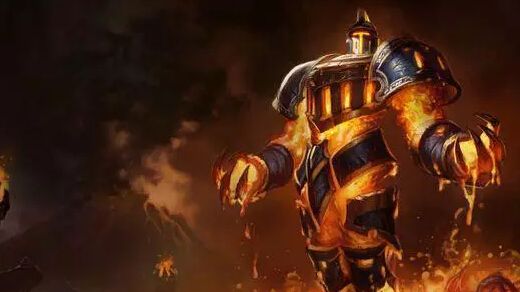 与其他皮肤不同的是,这款皮肤披上了较多的金属铠甲,原画中站在沸腾的岩浆上,浑身发出橘黄色的光芒。这款皮肤的特效也还是相当 不错的。