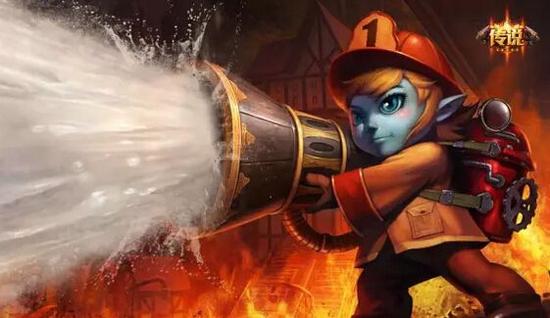 这款皮肤中小小炮娘化身消防员,火炮筒变成了灭火枪。