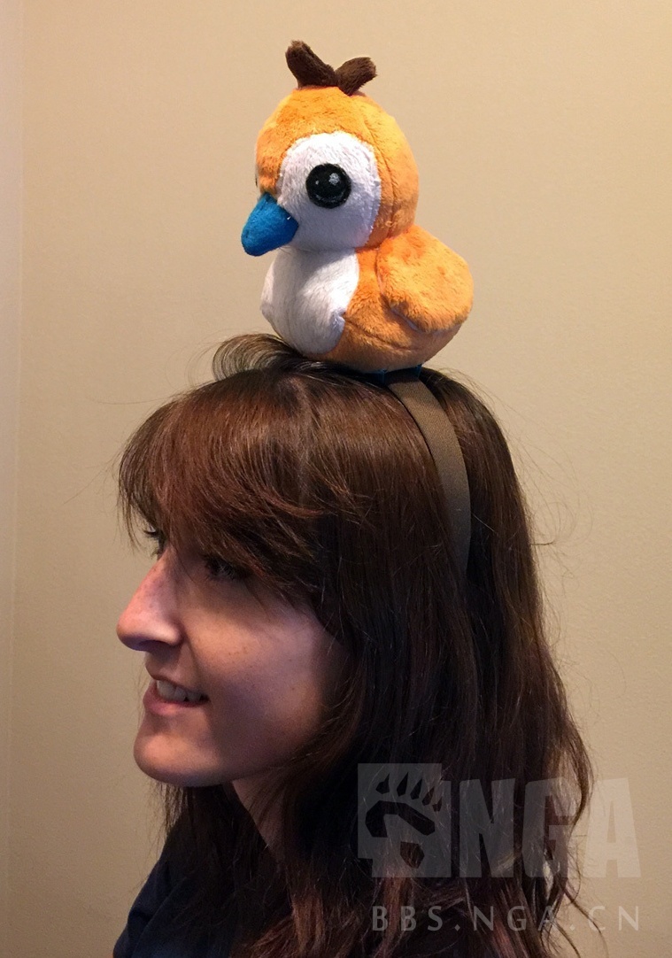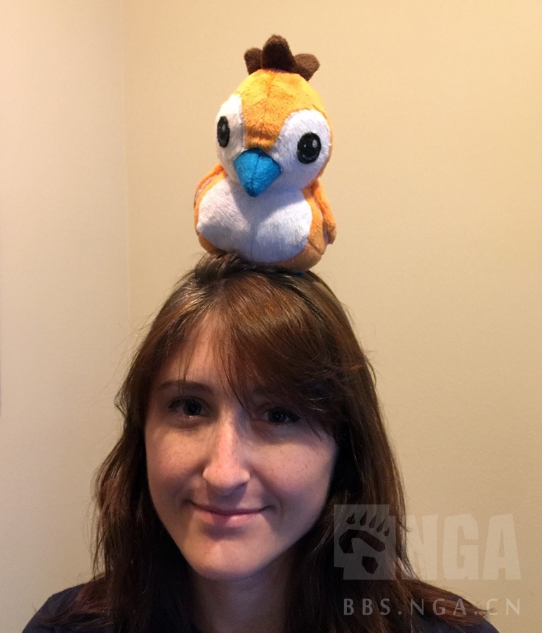 外服玩家自制魔兽世界周边:小萌鸟佩佩顶头上!