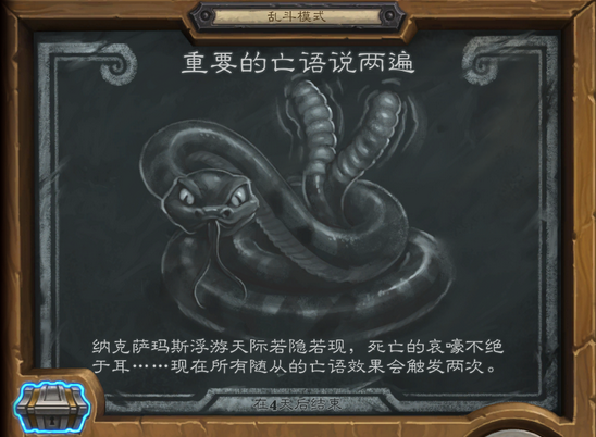 乱斗说明:纳克萨玛斯浮游天际若隐若现,死亡的哀嚎不绝于耳。。。。。。现在,所有随从的亡语效果会触发两次。
