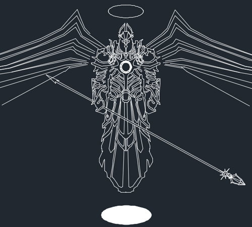 今天为大家带来的作品是玩家云遥使用CAD软件创作的大天使英普瑞斯与泰瑞尔,虽然成品只是由简单的线条组成,但是依然展现出了两位大天使英武不凡的气质。