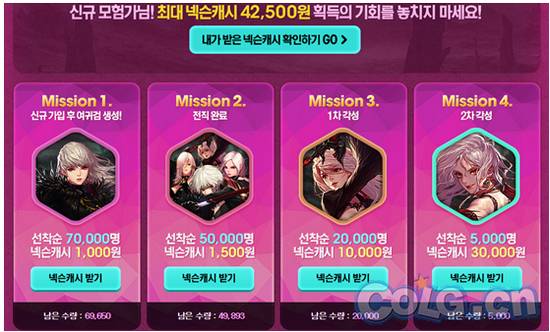 任务2:完成转职;根据先来后到奖励5万名玩家1500点Nexon点券