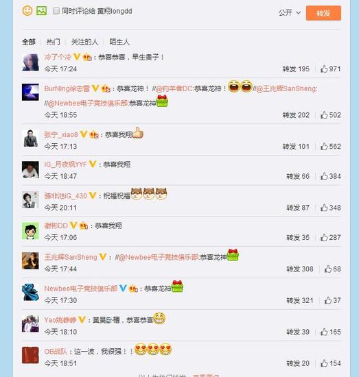 今日龙神微博爆料已经领证,圈内好友纷纷发来祝贺: