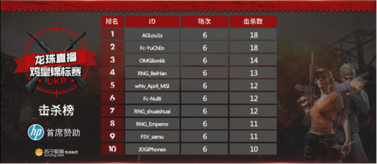 由龙珠直播举办的最高规格《绝地求生》赛事,LKP龙珠鸡皇锦标赛正赛B组第二日的三场比赛战罢,最终晋级循环赛的名单也已经产生。RNG、OMG、AG、FC、1K、EHOME、SINA、COG、eStar、FS.V等十支战队成功突围。