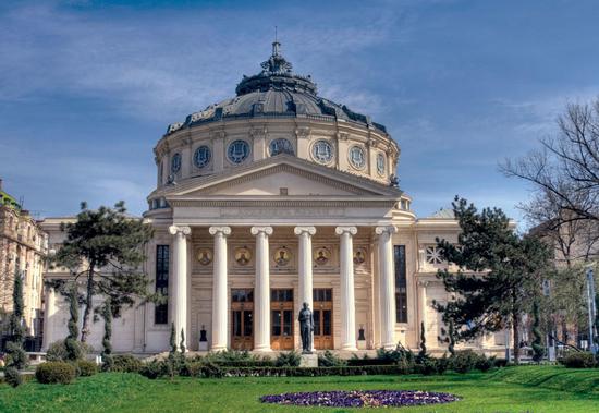 罗马尼亚语中,‘布加勒斯特’的读音为‘布库尔什蒂’,意为“欢乐之城”(‘布库尔’为欢乐的意思)。根据历史学家的发掘,布加勒斯特周边地区早在旧石器和青铜器时代就有人类生存的迹象。而自从罗马尼亚民族于1477年战胜了土耳其人的侵略后,这个位于登博维察河畔的城堡就成为了他们的活动中心。1859年,瓦拉几亚和摩尔达维亚两大公国合并建立国家──罗马尼亚。三年后,布加勒斯特成为了罗马尼亚首都。这一时期,地标性建筑‘罗马尼亚雅典娜神庙’的工程刚刚启动。到了1888年,罗马尼亚雅典娜神庙则以音乐厅的身份正式开业。时至今日,这座古老的建筑依然在承接各大乐团的商业演出。壮丽的穹顶、奢华的装饰,以及浓厚的新古典主义风格,一眼望去,罗马尼亚雅典娜神庙仿佛本身就传达了古典的韵律之美。