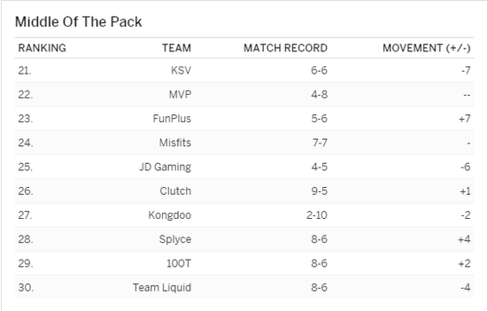 由于赛程安排,BLG自上个榜单到现在并没有打比赛,因此排名不变