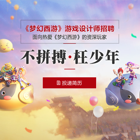 现在,《梦幻西游》游戏设计师招聘已经正式开启,如果你自认符合以上几大条件,那么不妨就在专题页面中留下自己的个人信息、教育背景、语言能力、IT技能等一系列的资料,将简历投给《梦幻西游》制作团队。让自己所爱的游戏照亮自己的前程,也让自己的小小力量,化为推动游戏发展的巨浪!