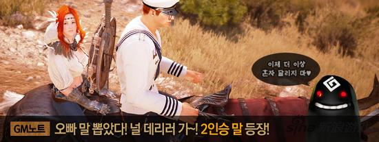 自从开放巴伦西亚(Valencia)大陆后,《黑色沙漠》的地图就变得更加广阔了。毫无疑问,玩家要花费更多的时间穿越大陆。这时,一只坐骑就能帮大忙。《黑色沙漠》中有许多种穿越巨大地图的方法,如乘坐大象和马。现在韩服《黑色沙漠》中加入了可以满足两位角色乘坐的马,玩家可以与爱人或朋友一起策马奔腾。
