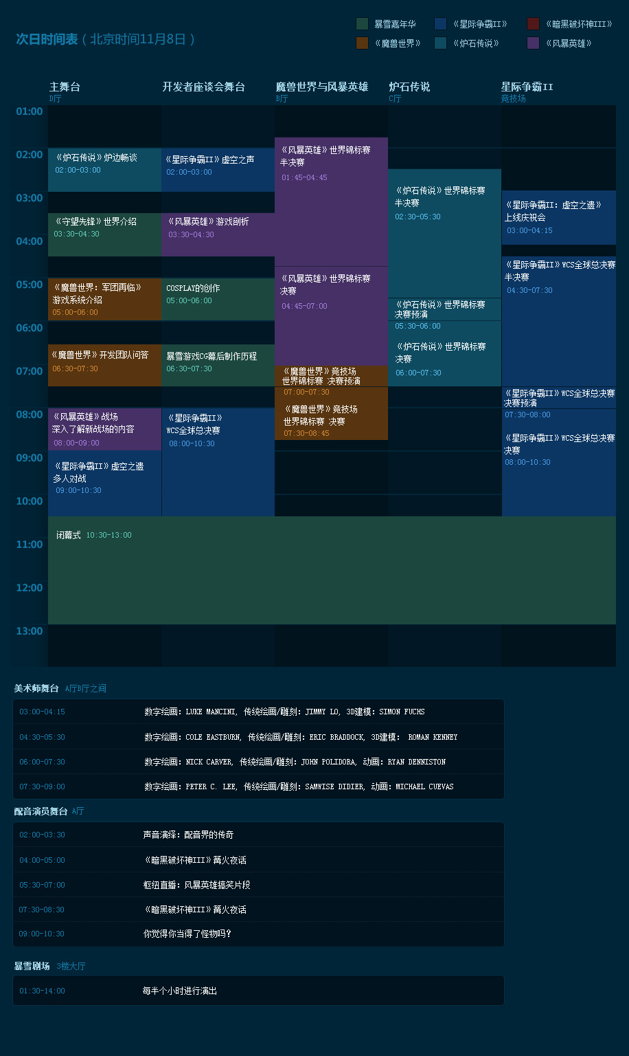 是时候计划一下2015暴雪嘉年华的安排了!我们刚刚发布了今年的活动排期,其中你可以看到将在北京时间11月7日及8日举行的各个展台的活动,我们还发布了一张展厅平面图来帮你了解整个楼层展厅的分布情况。看看暴雪嘉年华都有哪些活动吧: