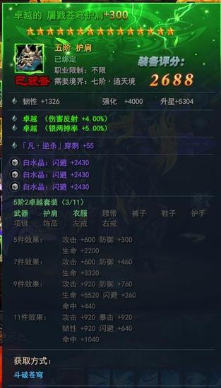 卓越属性:卓越属性为装备最重要的属性,每一条卓越属性都将为玩家附加大量的战斗力。卓越属性也是在装备初始生成时随机生成。