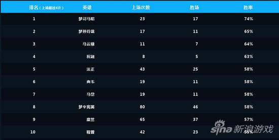 而在第三轮的比赛中,在英雄出场率以及胜率情况来看,梦*司马昭以其出色的消耗和推塔能力霸占榜首。前五中有三位英雄属于输出位,线上赛中经常能看到队伍四保一之后输出带领队友扭转局势的情况。不过,选取最多的,还是属于辅助,毕竟一个好的辅助就是成功的开始。在比赛当中,视野、控制往往都是前期的关键点。